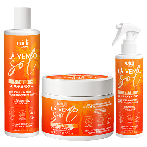 • Leave-in Praia Lá Vem o Sol: um verdadeiro escudo protetor para dias de sol, piscina e mar. Além de nutrir e reparar, conta com filtro solar e proteção térmica, blindando os fios contra os efeitos nocivos dos raios UV, do cloro, do sal e também de outras fontes de calor. Indicado para praia, piscina, pré e pós-treino. Pode ser usado antes para proteger os fios e depois da exposição ao sol para desembaraçar e finalizar os fios.